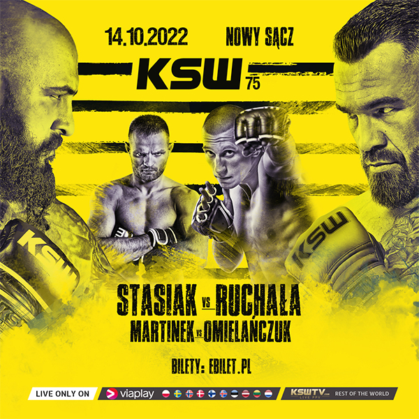 KSW 75: Ruchała vs. Stasiak will be a mixed martial arts event held by Konfrontacja Sztuk Walki on October 14, 2022 at the Strzelecki Park Amphitheater in Nowy Sącz, Poland.